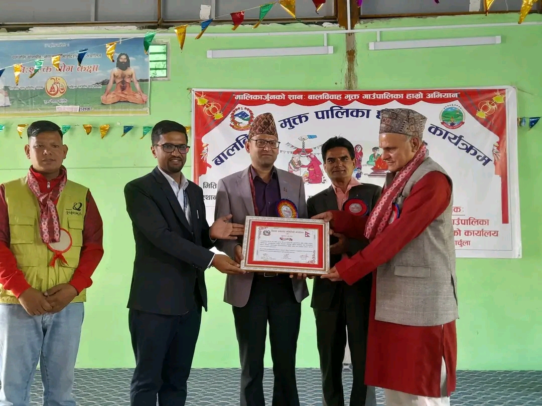 दार्चुला : मालिकार्जुन गाउँपालिकालाई बालविवाहमुक्त पालिका घोषणा गरिएको छ । मालिकार्जुनको सान, बालविवाहमुक्त गाउँपालिका हाम्रो अभियान भन्ने मूल नाराका साथ सोमवार मालिकार्जुन गाउँपालिकालाई जिल्लाकै पहिलो बालविवाह मुक्त पालिका घोषणा गरिएको हो ।